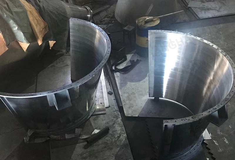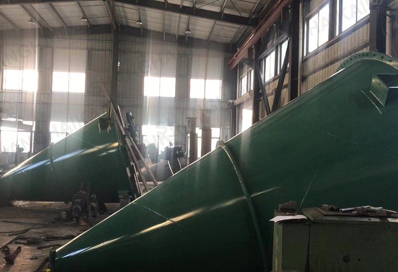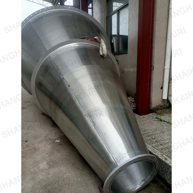 需要混合的工作液體由接頭輸入,經(jīng)過管路、噴頭,均勻噴灑在筒體中運動的物料內(nèi)。