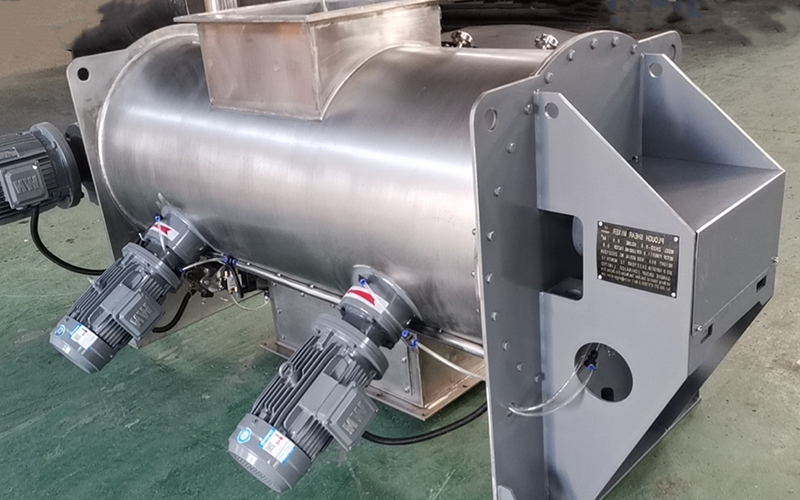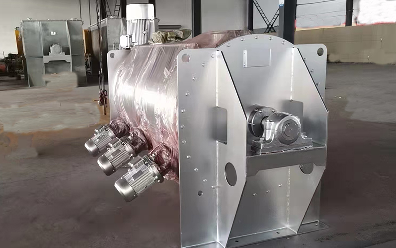 A:混合機結構主要由傳動部分,臥式筒體、犁刀組軸、飛刀組、出料閥、噴液裝置等組成。