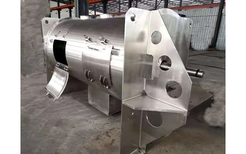 B:混合機傳動部分由電機、擺線針輪減速機、聯軸器、犁刀軸等部件組成。臥式圓筒體作盛物料用,筒體上開有若干孔,供進出料、觀察用。犁刀軸支承座固定在筒體二端的蓋板上。