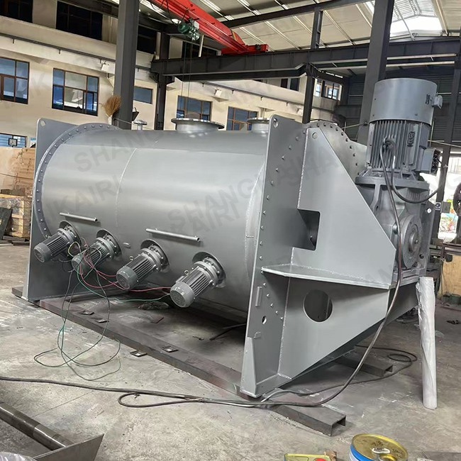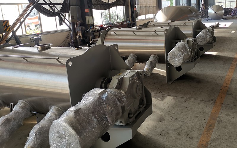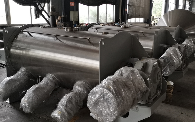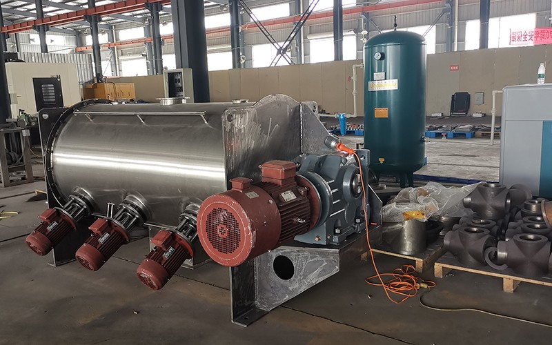 混合機可加裝多種組件使用,常用的有盤管蒸汽夾套、循環介質夾套、在線取樣閥、高速飛刀、溫度探測、稱重系統、除塵凈化、真空干燥等組件。添加少量液體時,可配置噴液噴霧裝置,更有利于液體均勻的分散混合于粉料內,噴液系統由壓力源,儲液罐,噴頭三種基本組成模塊。材質可根據要求定制碳鋼,SS304不銹鋼、SS316L不銹鋼,SS201不銹鋼,或其他高硬度合金攪拌器,也可以進行聚氨酯內襯或者噴涂高耐磨材料。