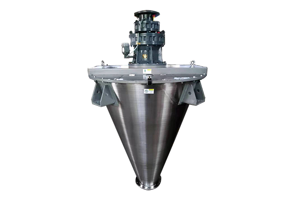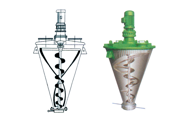 由傳動結構、錐形筒、外層螺帶攪拌器、內層反向螺桿攪拌器和出料閥組成。